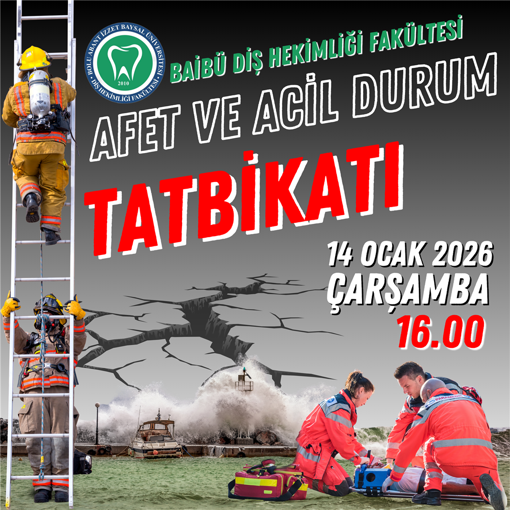 Fakültemizde 14.01.2026 Çarşamba günü saat 16.00'da 'Afet ve Acil Durum Tatbikatı' gerçekleştirilecektir. Afet ve Acil Durum Ekiplerimizin hafta boyunca ilgili eğitimlere katılmaları planlanmıştır. Fakültemiz çalışanlarının koordineli şekilde tatbikata iştirak etmeleri gerekmektedir.