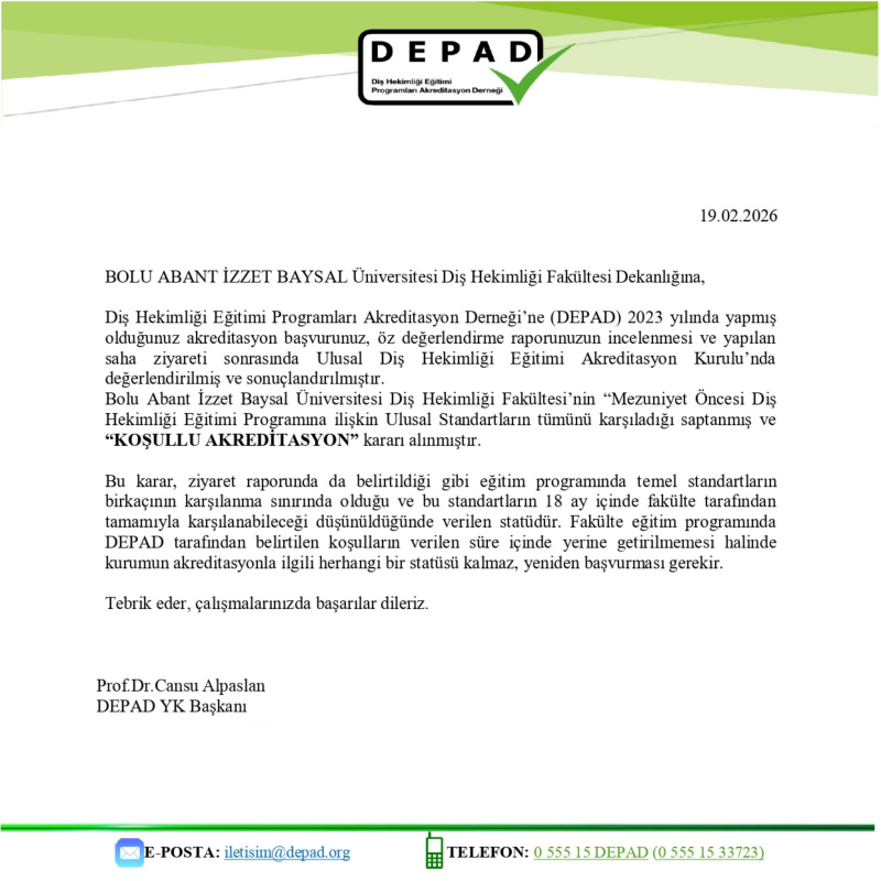 Fakültemize DEPAD'dan Koşullu Akreditasyon