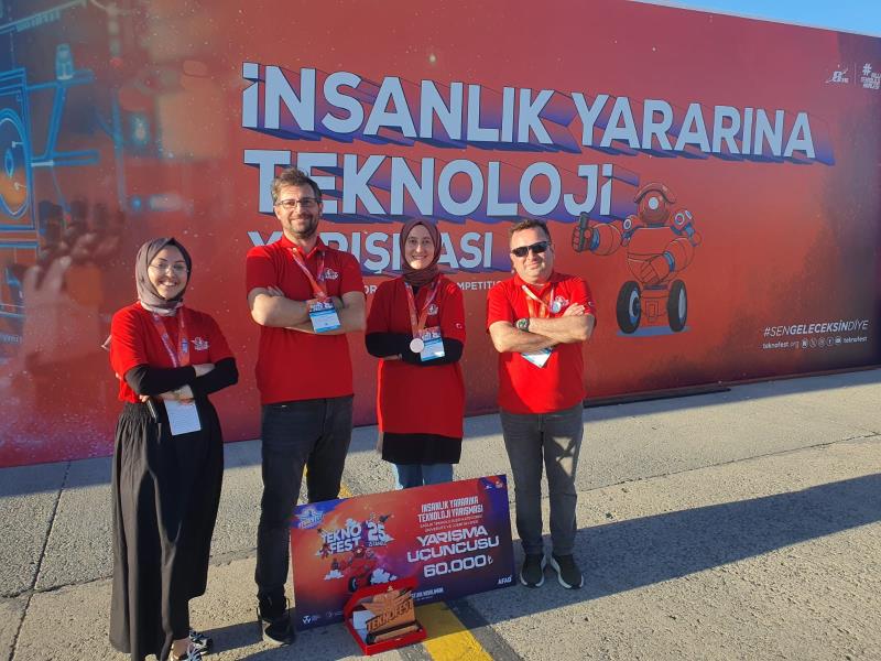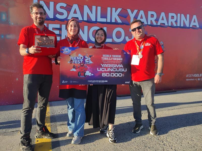 Bolu Abant İzzet Baysal Üniversitesi olarak katıldığımız Havacılık, Uzay ve Teknoloji Festivali TEKNOFEST Biyoteknoloji İnovasyon Yarışması Üniversite Üzeri Fikir Kategorisi‘nde 2 ve İnsanlık Yararına Teknoloji Yarışması Üniversite Üzeri Sağlık Kategorisi‘nde de 2 projelemiz olmak üzere toplamda 4 proje ile Prof. Dr. Aydın HİM, Doç. Dr. Güven AKÇAY, Dr. Öğr. Üyesi Ali Osman ARSLAN, Dr. Öğr. Üyesi Hayriye SOYTÜRK, Dr. Koray KÖÇKEN, Sevdenur UZUN(Fizyoloji Doktora Öğr.), Esra KARAKOÇ (Tıp Fak. Öğr.), Sena ÇAMUR (Tıp Fak. Öğr.), Ayşenur AKKURT (Tıp Fak. Öğr.) ve Meryem Nur MESUT (Diş Hek. Öğr.) Finalist ekibi olarak yarıştığımız TEKNOFEST 2025’den TEKNOFEST İnsanlık Yararına Teknoloji Yarışması Üniversite Üzeri Sağlık Kategorisi’nde Üçüncülük ve Ticarileşme Potansiyeli Ödülleri’ne layık görüldük. Tüm ekibi ve ekipte yer alan Fakültemiz öğrencisi Meryem Nur Mesut'u tebrik eder başarılarının devamını dileriz.
