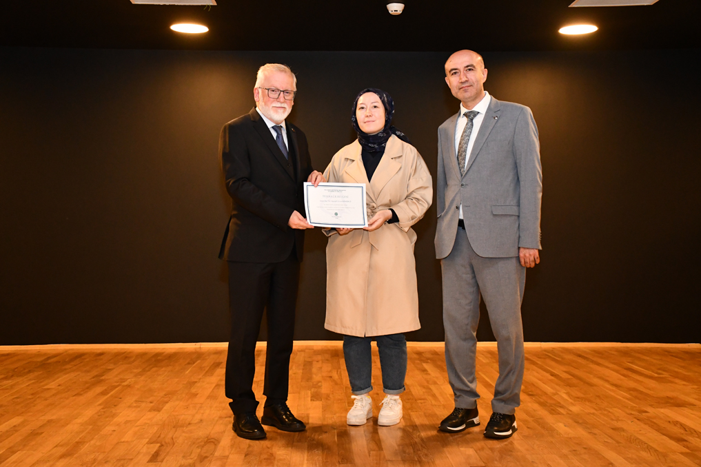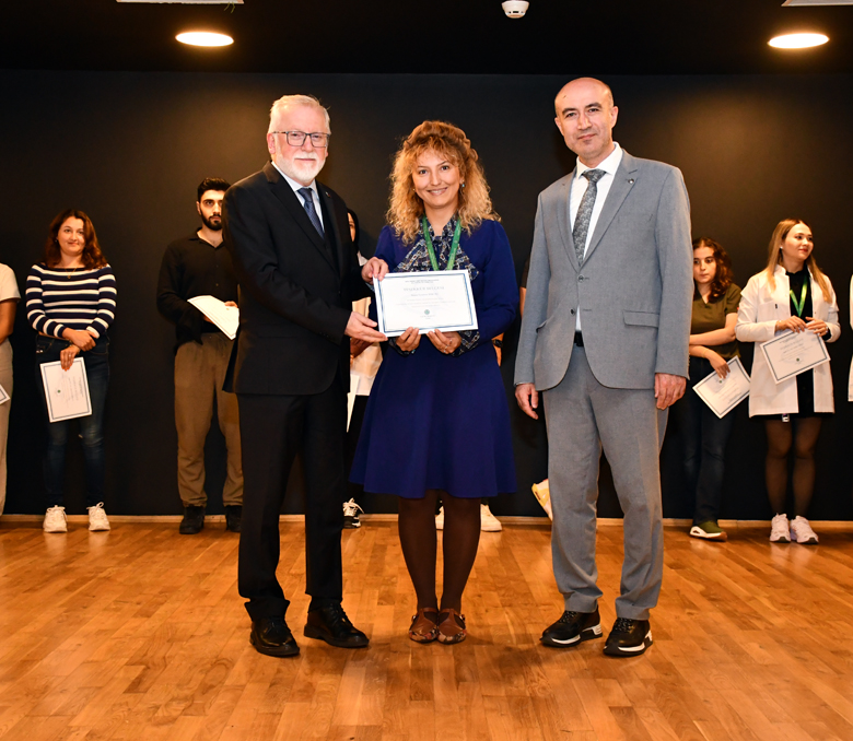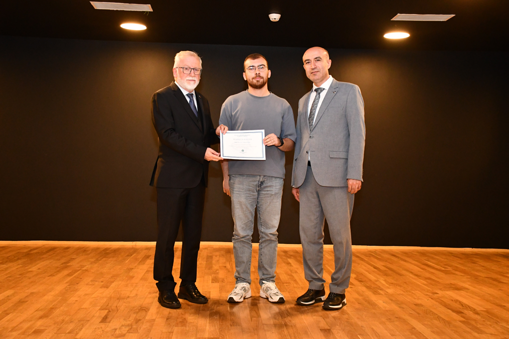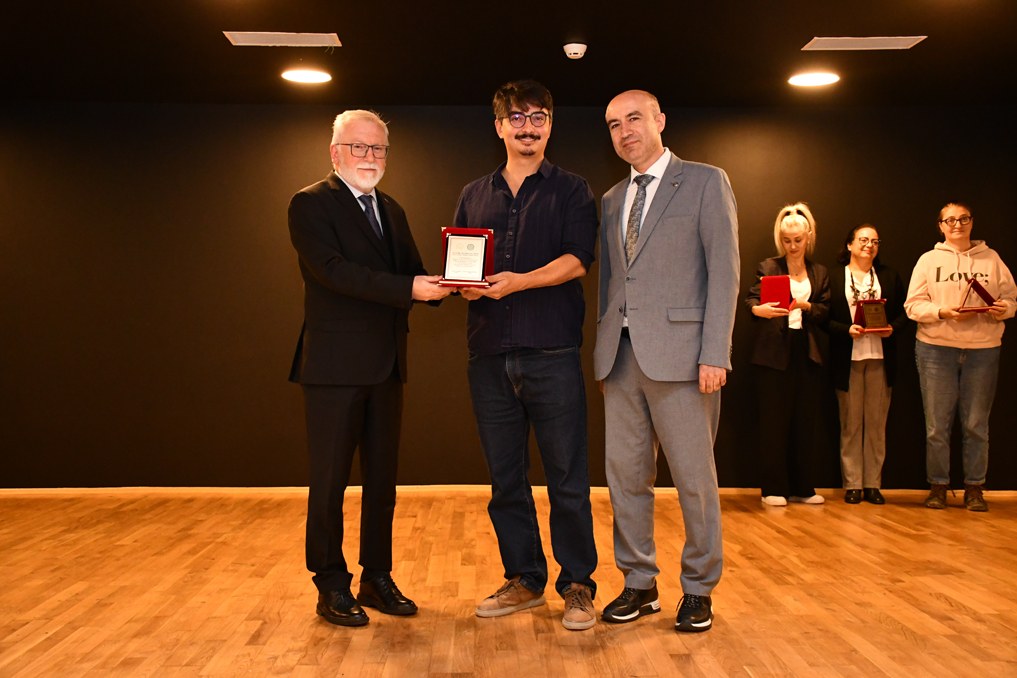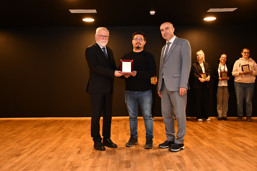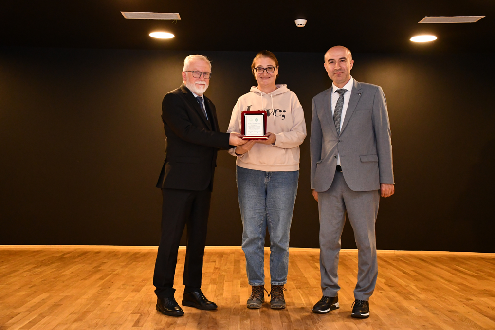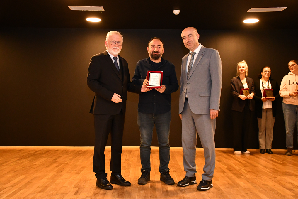 Konuşmaların ardından Fakültemiz Dekanı Prof. Dr. Ali Keleş, Üniversitemiz Rektörü Prof. Dr. Mustafa Alişarlı’ya tablo hediye etti. Akabinde Eğitsel Faaliyet Ödül Törenine geçildi ve ödül almaya hak kazananlara ödülleri verildi.