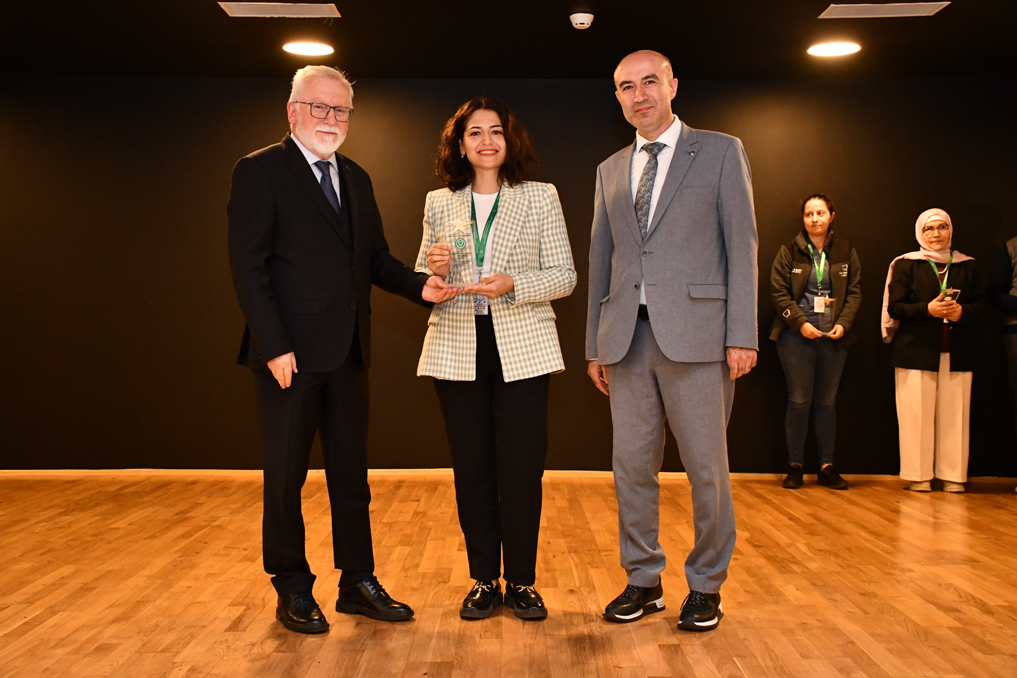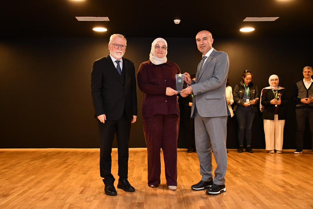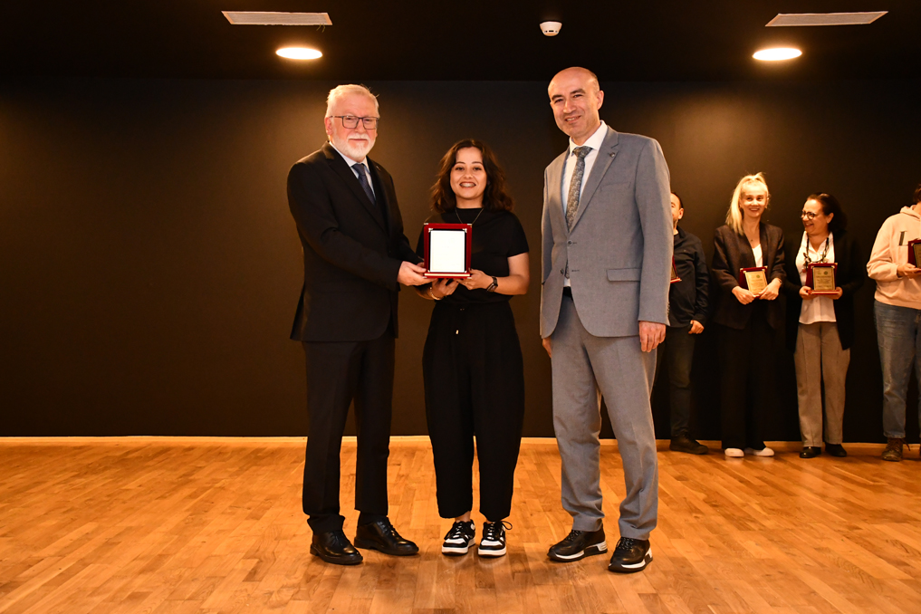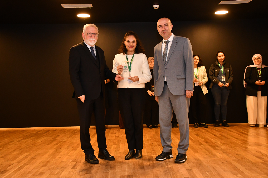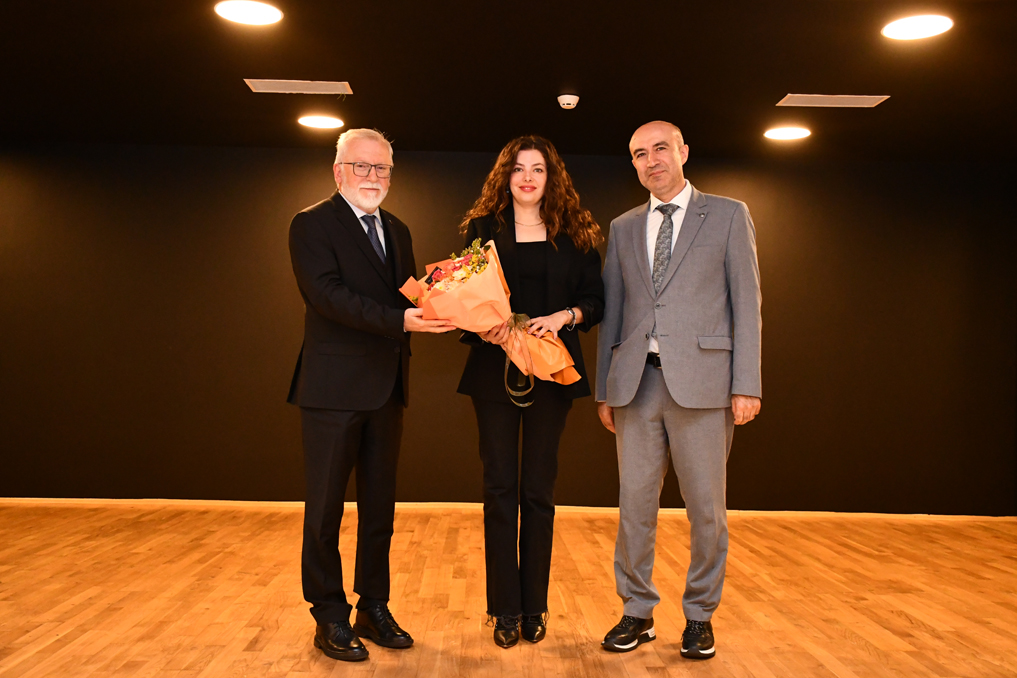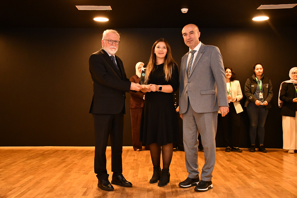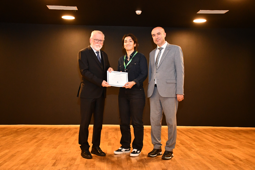 Konuşmaların ardından Fakültemiz Dekanı Prof. Dr. Ali Keleş, Üniversitemiz Rektörü Prof. Dr. Mustafa Alişarlı’ya tablo hediye etti. Akabinde Eğitsel Faaliyet Ödül Törenine geçildi ve ödül almaya hak kazananlara ödülleri verildi.