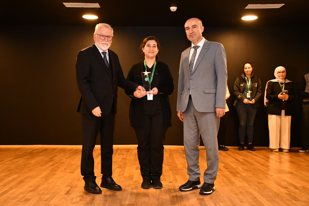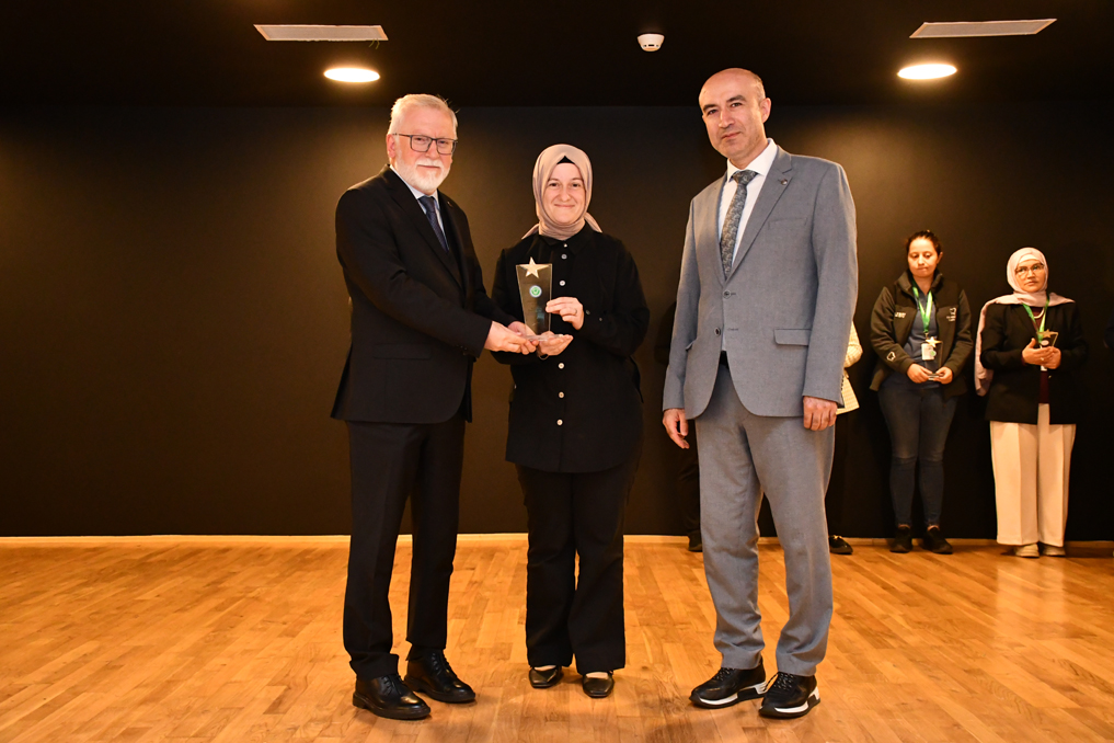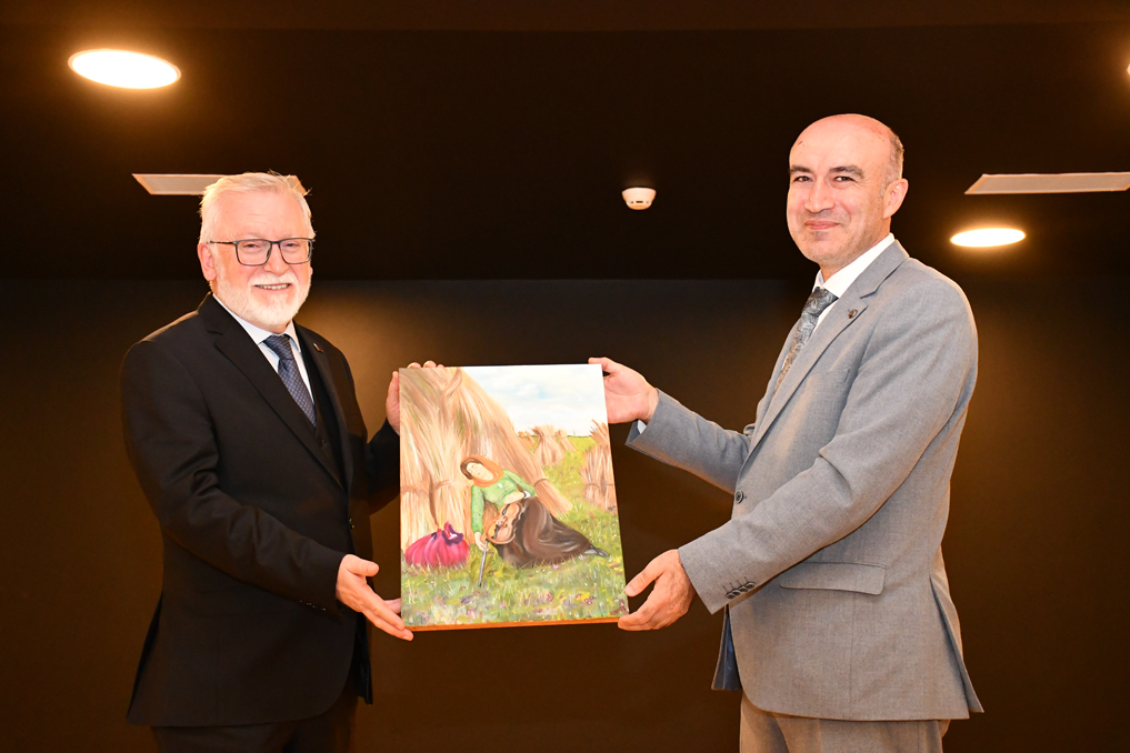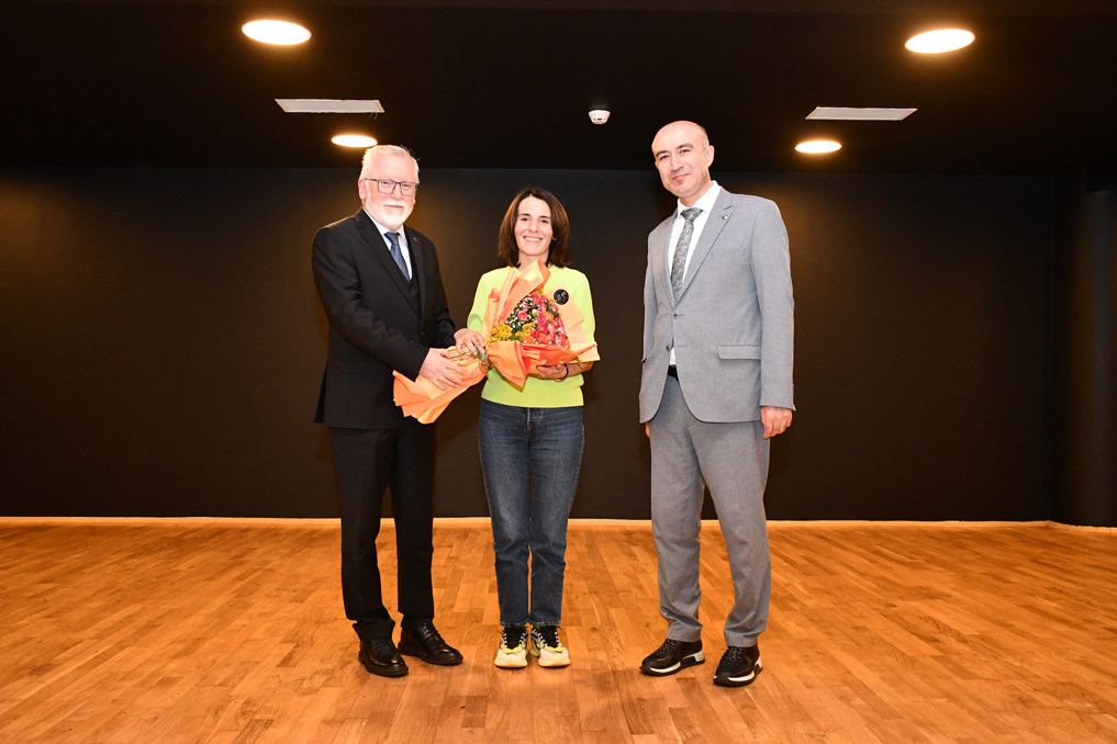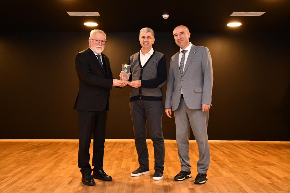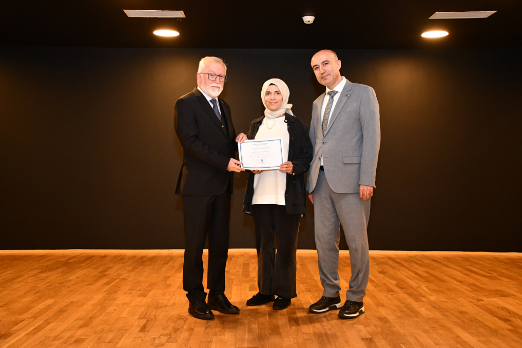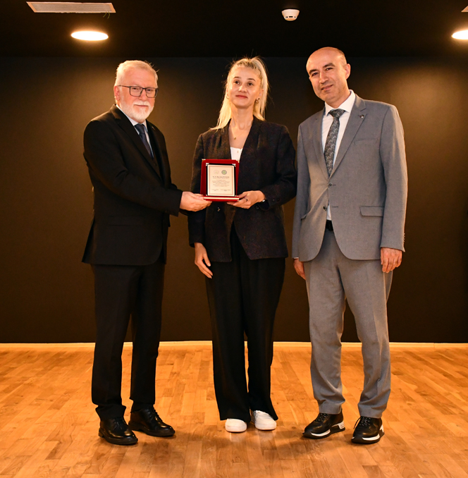 Konuşmaların ardından Fakültemiz Dekanı Prof. Dr. Ali Keleş, Üniversitemiz Rektörü Prof. Dr. Mustafa Alişarlı’ya tablo hediye etti. Akabinde Eğitsel Faaliyet Ödül Törenine geçildi ve ödül almaya hak kazananlara ödülleri verildi.