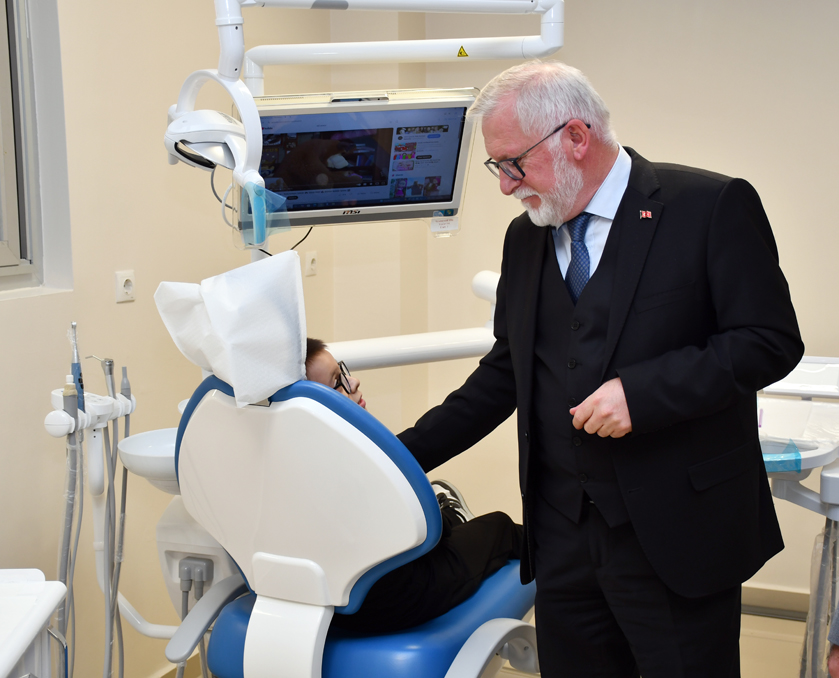 Törenin bitmesinin ardından Üniversitemiz Rektörü Prof. Dr. Mustafa Alişarlı, Dekanımız Prof. Dr. Ali Keleş ve beraberindeki heyet pedodonti bölümündeki yenilikleri yerinde inceledi.