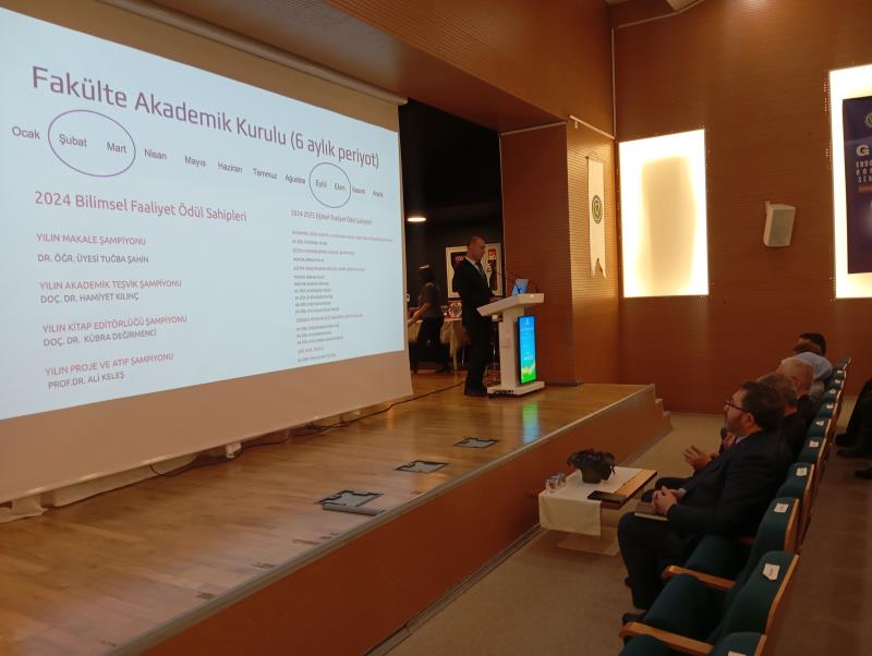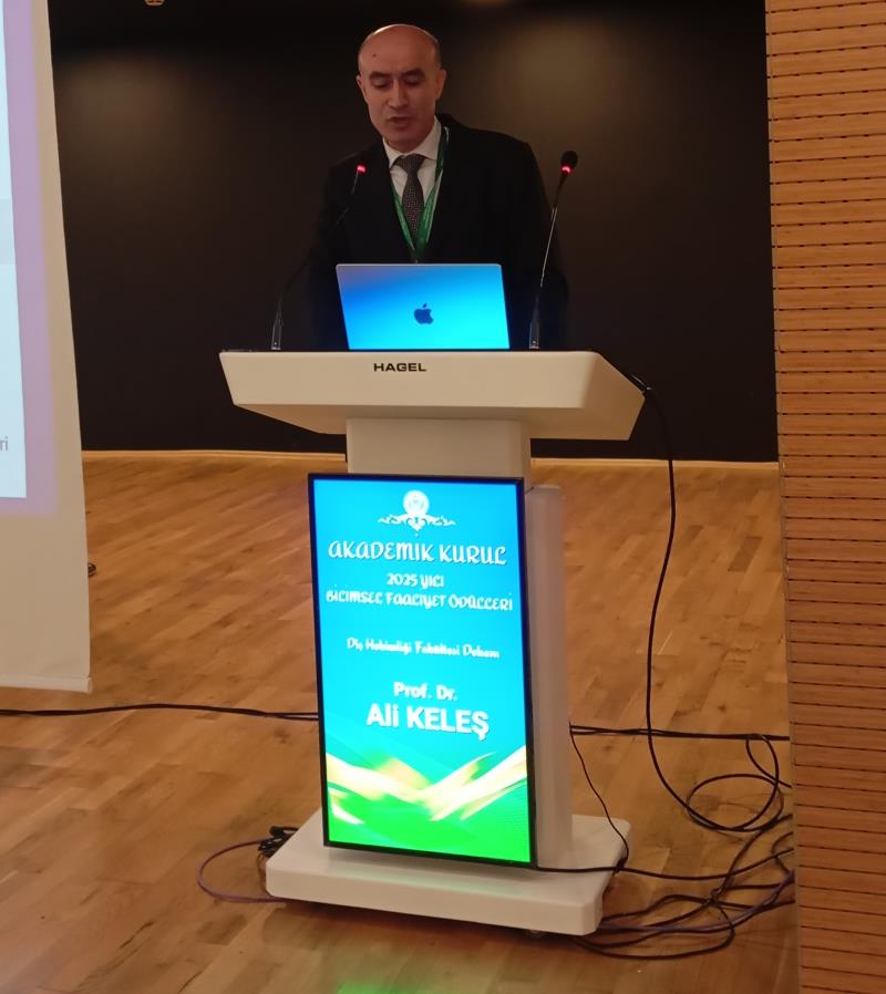 Törenin açılış konuşmasını gerçekleştiren Sayın Dekanımız Prof. Dr. Ali KELEŞ fakültenin 2025 yılı faaliyet raporunu baz alarak hazırladığı sunumu ile fakültenin geldiği nokta, idari ve mali tabloları, hasta sayıları ve işleyiş konularında bilgiler verdi. Dekandan sonra sahneye gelen Rektörümüz Sayın Faruk YİĞİT, Rektör yardımcılarımız ve Genel Sekreter V. ile yeni yönetim stratejileri ile ilgili konuşmalarını gerçekleştirip fakülte personelinin dilek ve sorularını cevapladılar.
