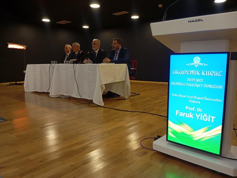 Bolu Abant İzzet Baysal Üniversitesi (BAİBÜ) Diş Hekimliği Fakültesi’nde 2025 yılı bilimsel faaliyetlerini görünür kılmak amacıyla “Bilimsel Faaliyet Ödül Töreni” düzenlendi. Fakülte Akademik Kurul programı kapsamında gerçekleştirilen etkinliğe BAİBÜ Rektörü Sayın Prof Dr. Faruk YİĞİT, Rektör Yardımcıları Prof. Dr. Ferudun KAYA ve Prof. Dr. Kaya YILDIZ Genel Sekreter V. Prof. Dr. Yusuf CERİT de katıldı.