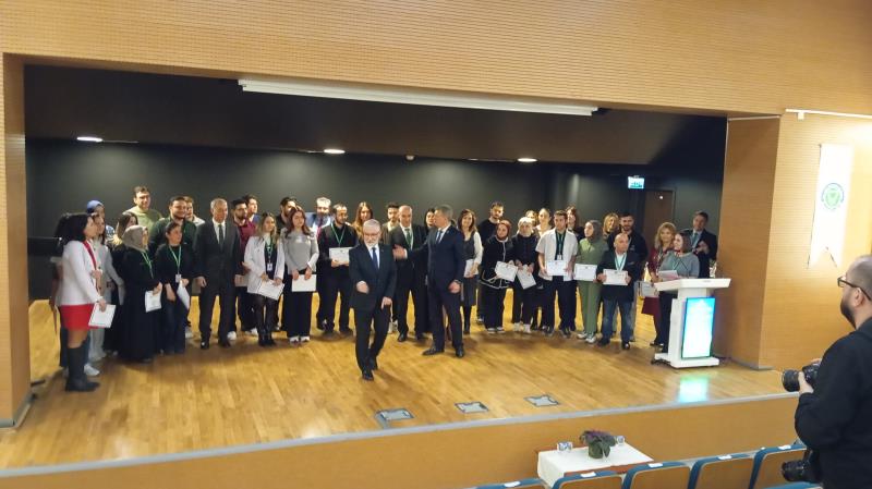 Törende; bilimsel başarılarıyla öne çıkan akademisyenler, araştırma görevlileri ve öğrenciler ödüllendirilirken, meslekte çeyrek asrı geride bırakan personel de plaketle onurlandırıldı. Fakültemizde son beş yıldır hiç şikayet almayan Tayfun Aymaz da 5 Yıllık Gurur Ödülüne layık görüldü. Ayrıca hastalardan gelen teşekkür ve geri bildirimlere istinaden, fakültenin hizmet süreçlerine katkı sunan çalışanlara teşekkür belgeleri takdim edildi.